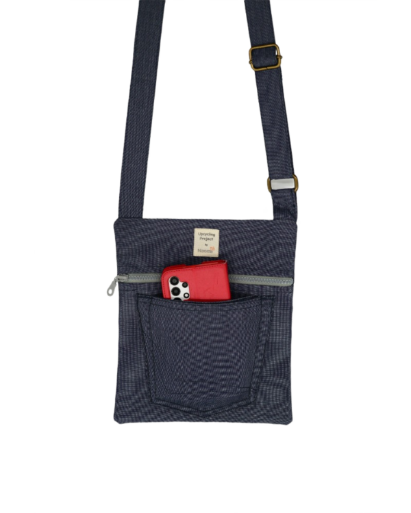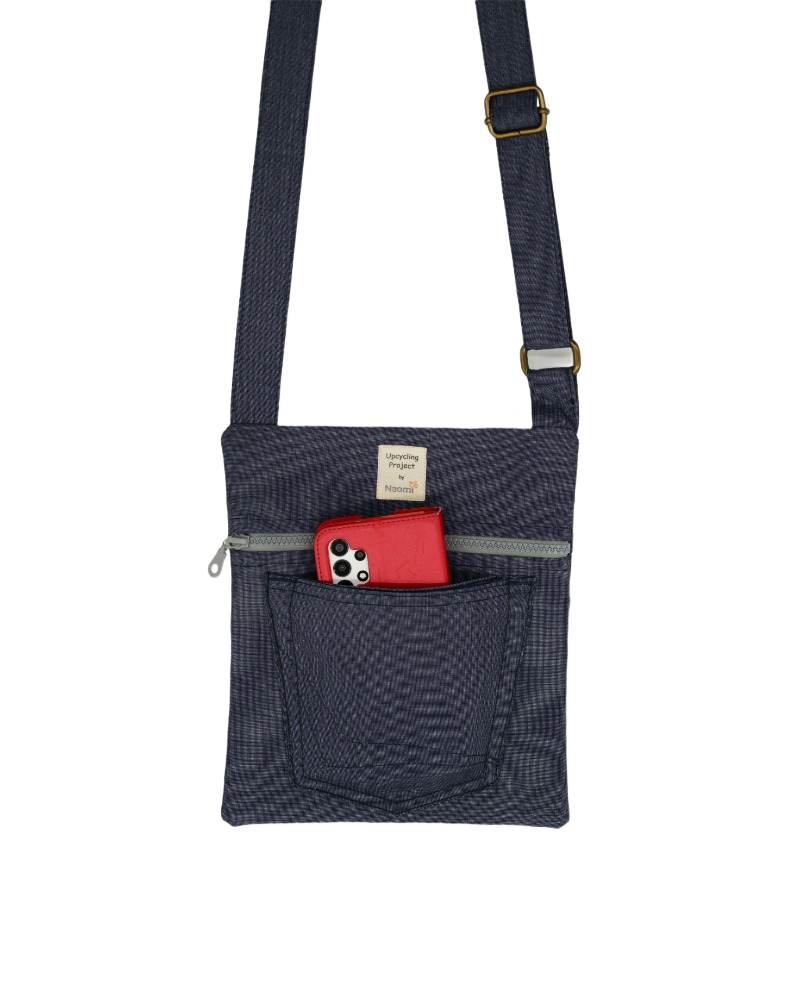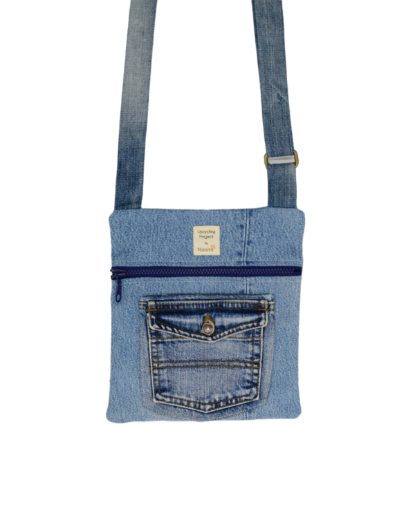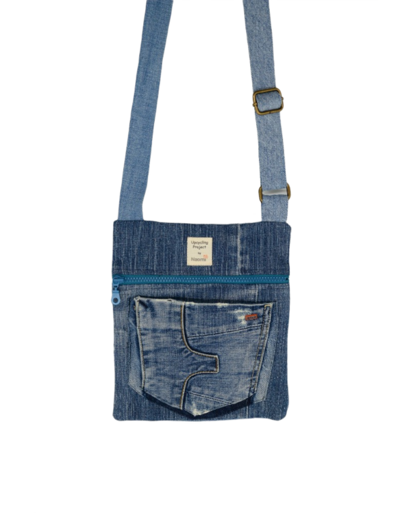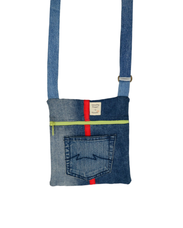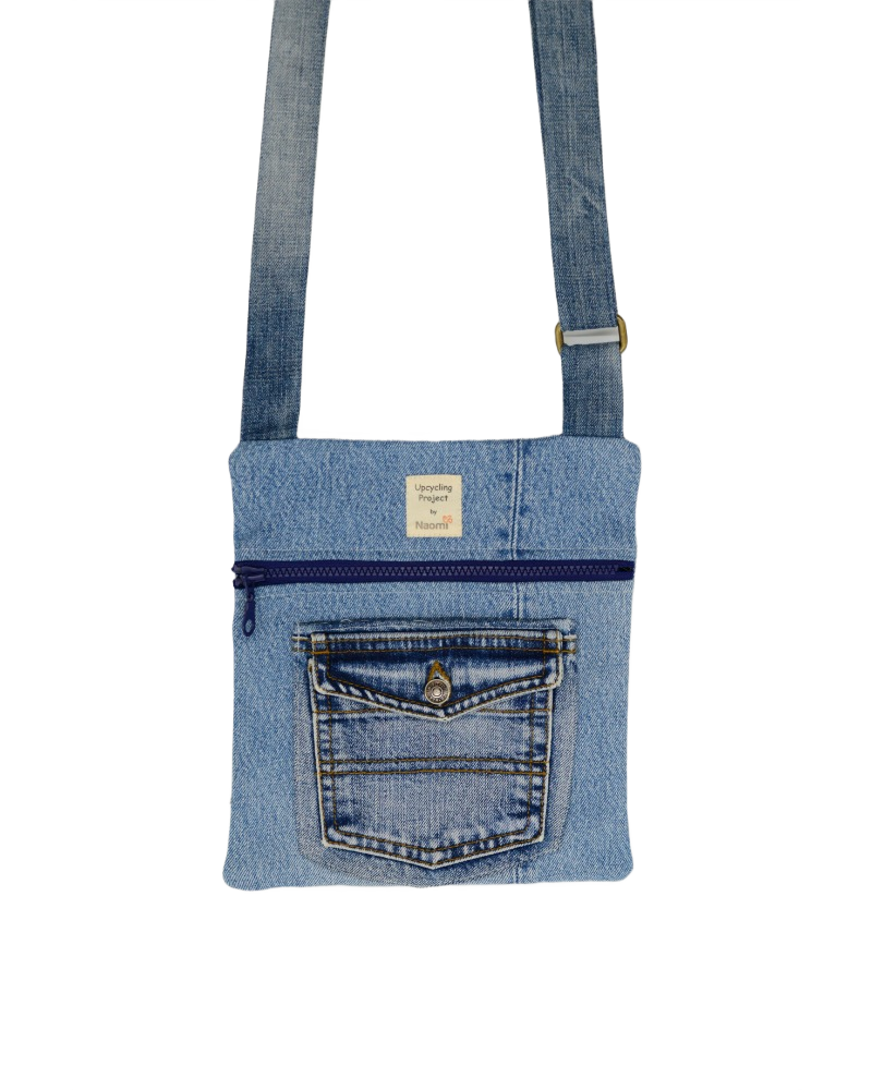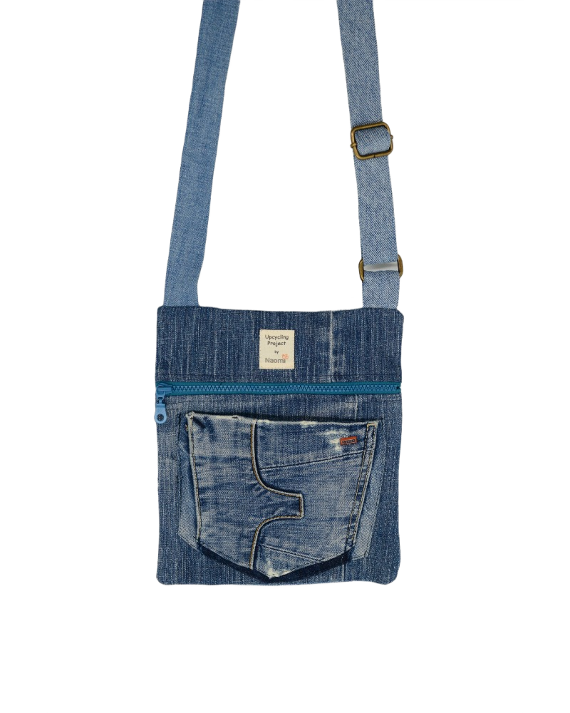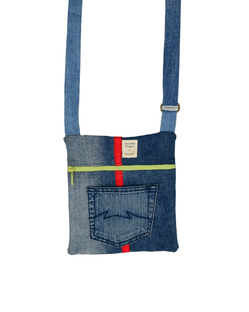 This travel bag is unique, made by upcycled jeans. It fits any style, just like the jeans themselves. Perfect for shopping, travel, the beach or as a school bag. Zippers in different colors and the inline based on zero waste philosophy. In the bag are an extra pocket for your mobile. It is practical, durable, comfortable, takes up little space when folded and can be washed in the washing machine.